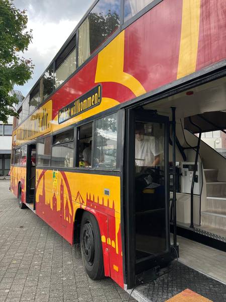 „Das ist genau das, was ich gebraucht habe“ – sagt eine Mutter und schlürft genüsslich ihren Cappuccino, welcher liebevoll in unserer Siebträgermaschine zubereitet wurde. „Ich kann mich hier mit alten und neuen Freunden austauschen, während meine Kinder begeistert basteln, spielen und einer Geschichte lauschen“. Sie nimmt entspannt Platz auf einem der bequemen Sitze im Cafebereich des Doppelstockbusses NimBus.